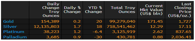 Summary of ETF precious metal holdings: